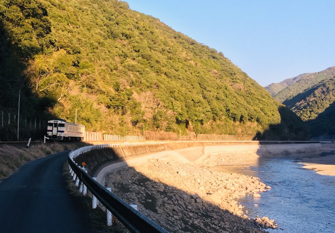 大晦日、球磨川沿いを走る